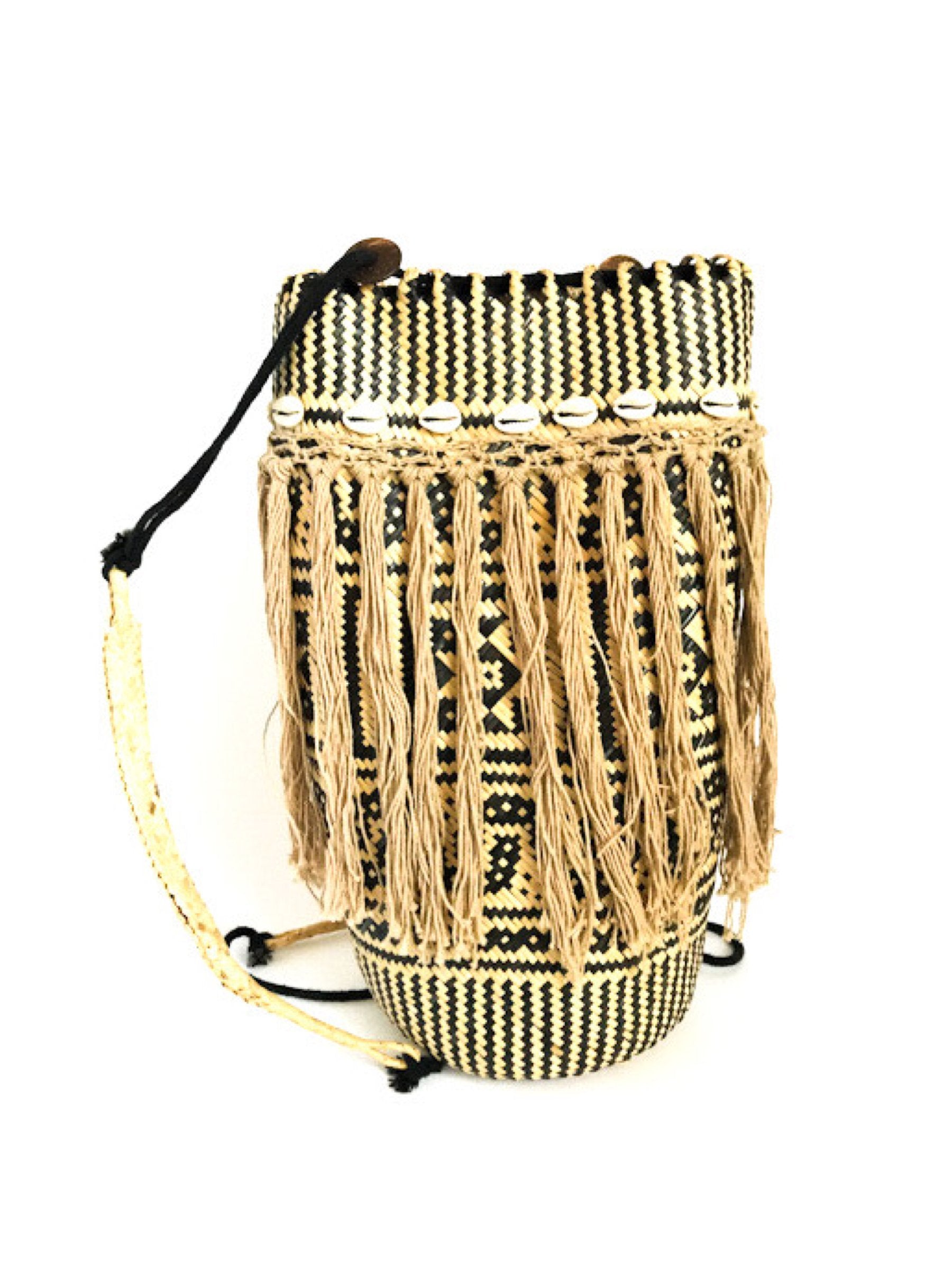Hand made rattan backpack. Can be worn over one shoulder as a sling bag as well.