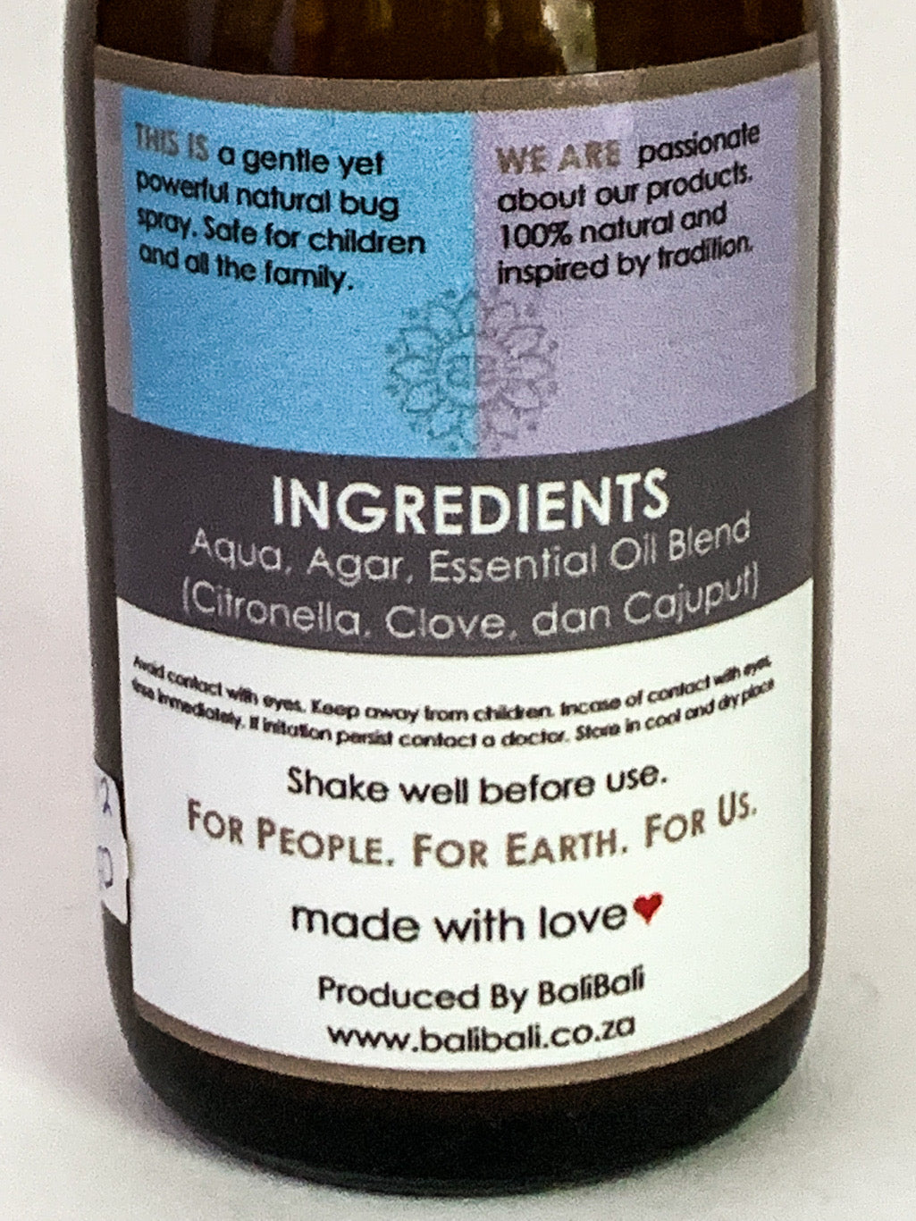 Aqua, Agar, essential oil blend ( citronella, clove, dan cajuput)
