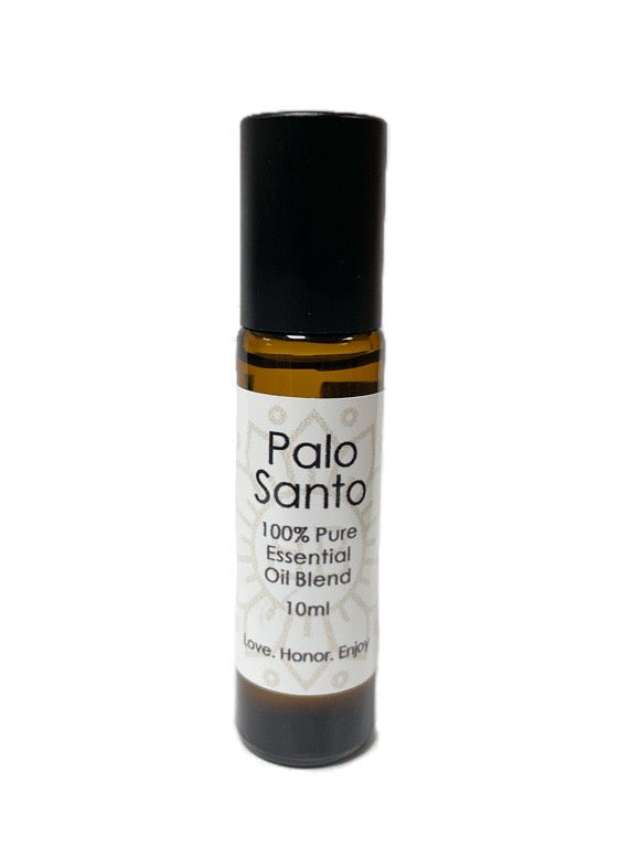 Pure essential oils of Palo Santo, jojoba, sandalwood, frankincense, myrrh and ginger.