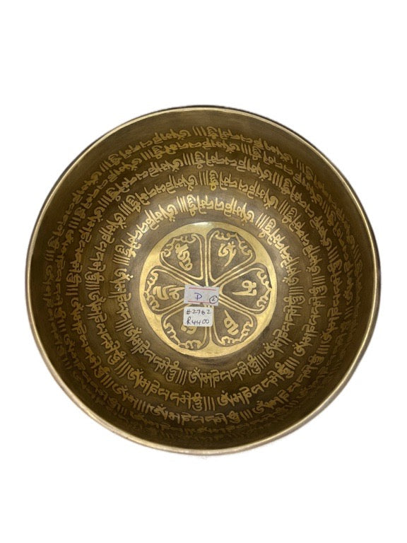 Singing Bowl Etched Tibetan hand beaten +/- 15cm diameter - various notes & designs