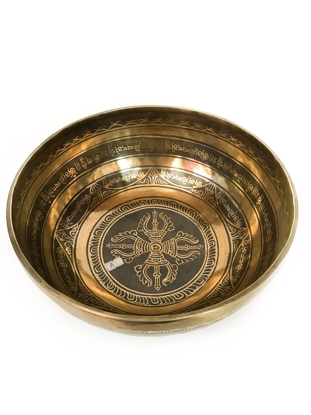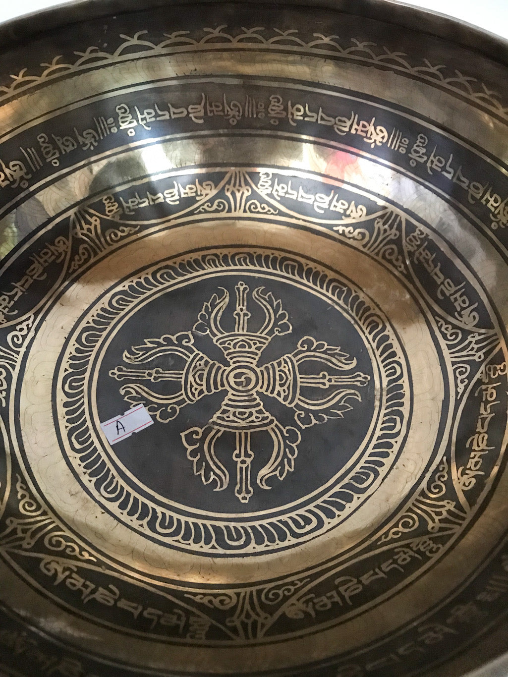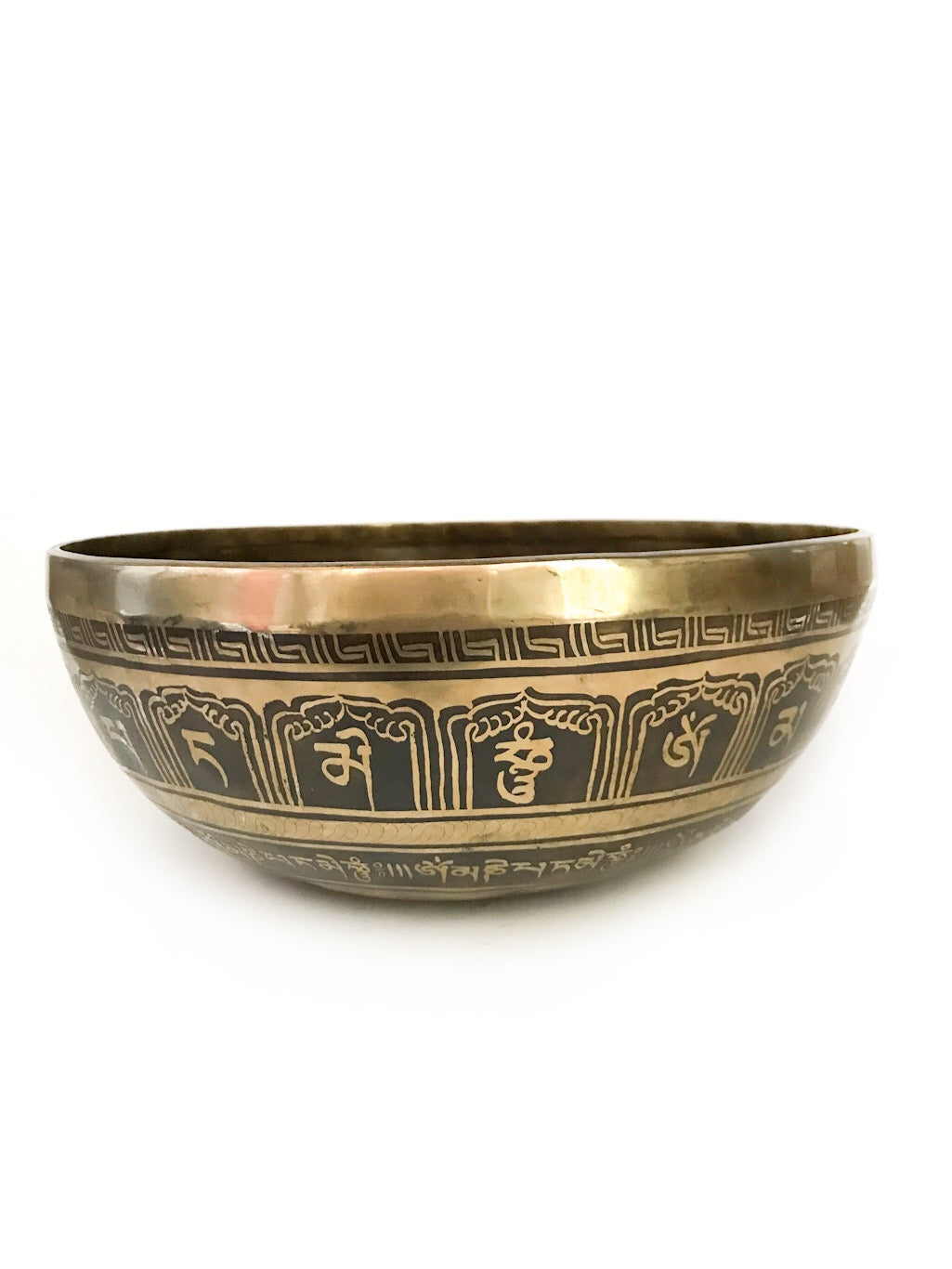 Singing Bowl Etched Tibetan hand beaten, 28,5cm, A note