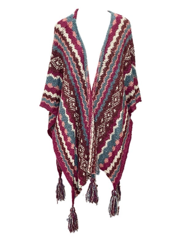 ❤Fair Isle open poncho with tassels