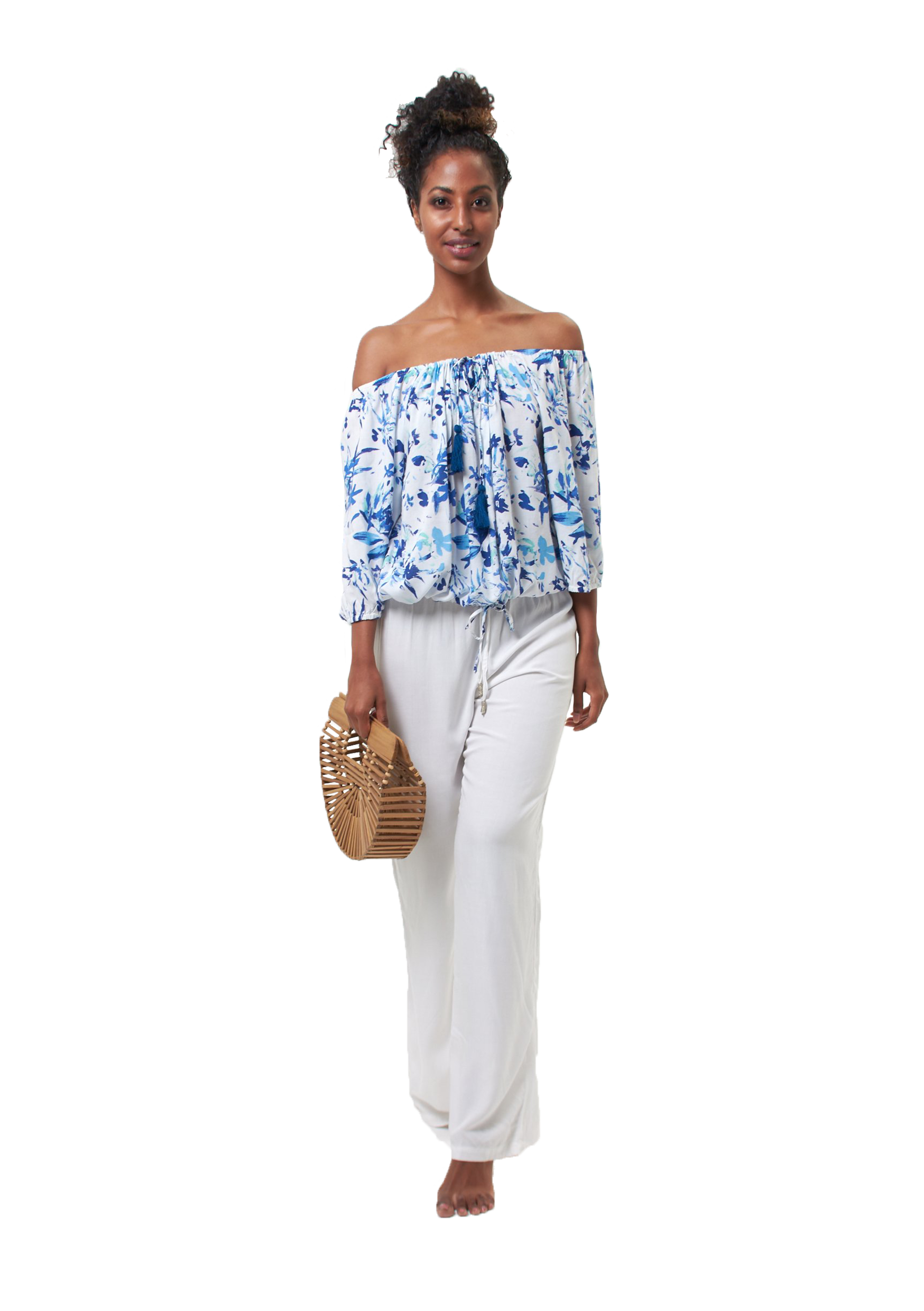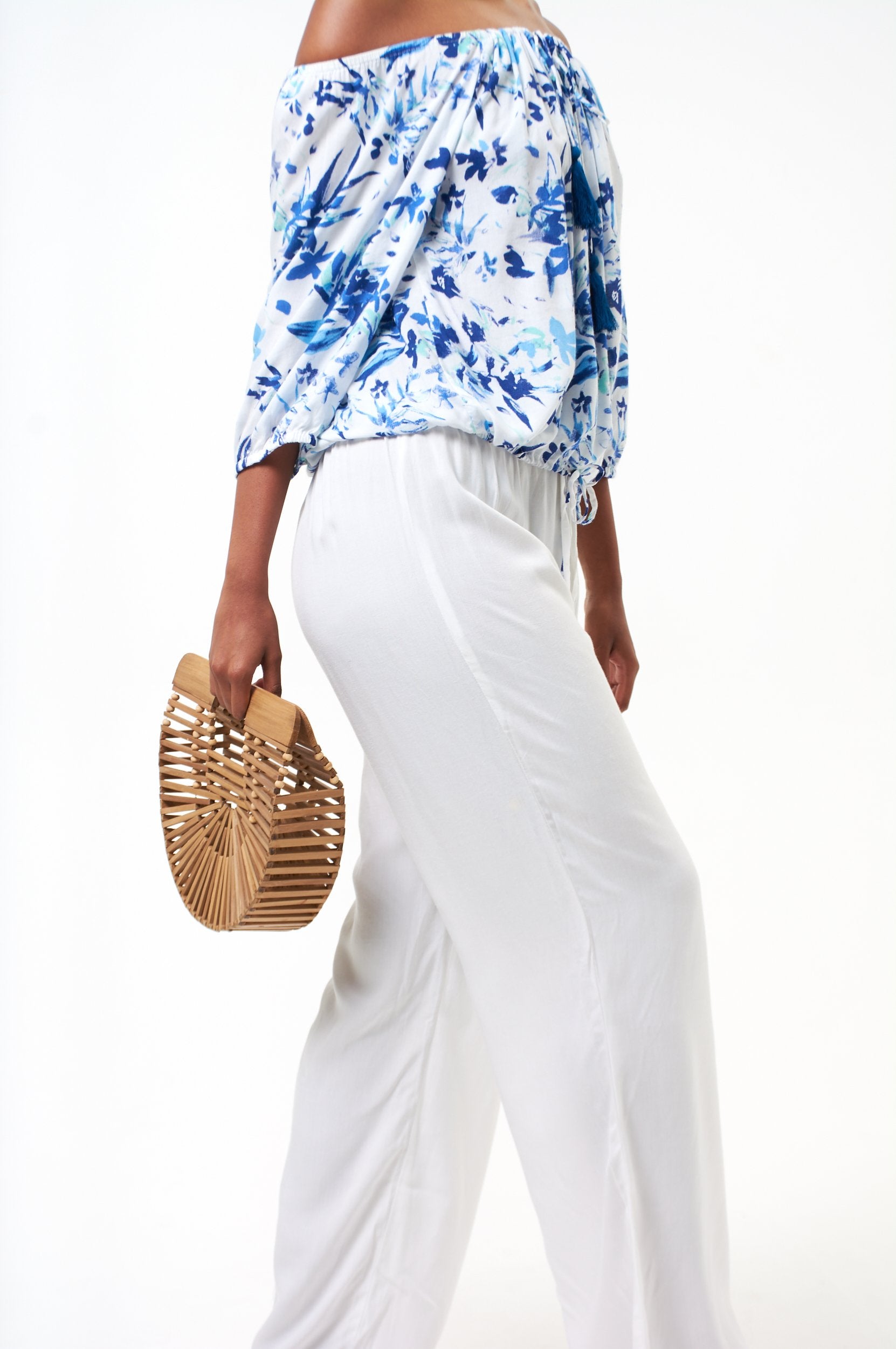❤Long pants with bead detail on drawstring - white