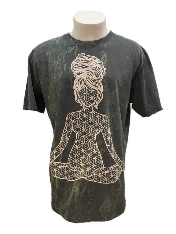 "Lotus" grey/green cotton tee shirt - X-large 58cm 1/2 chest