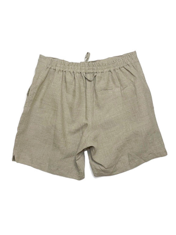 Flat front, back elastic waist, side pocket and back pocket with velcro closure.