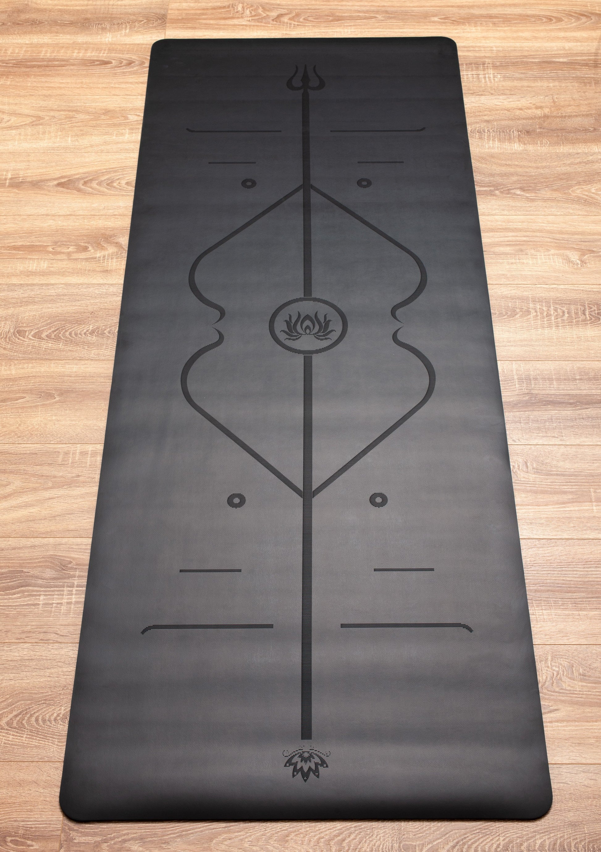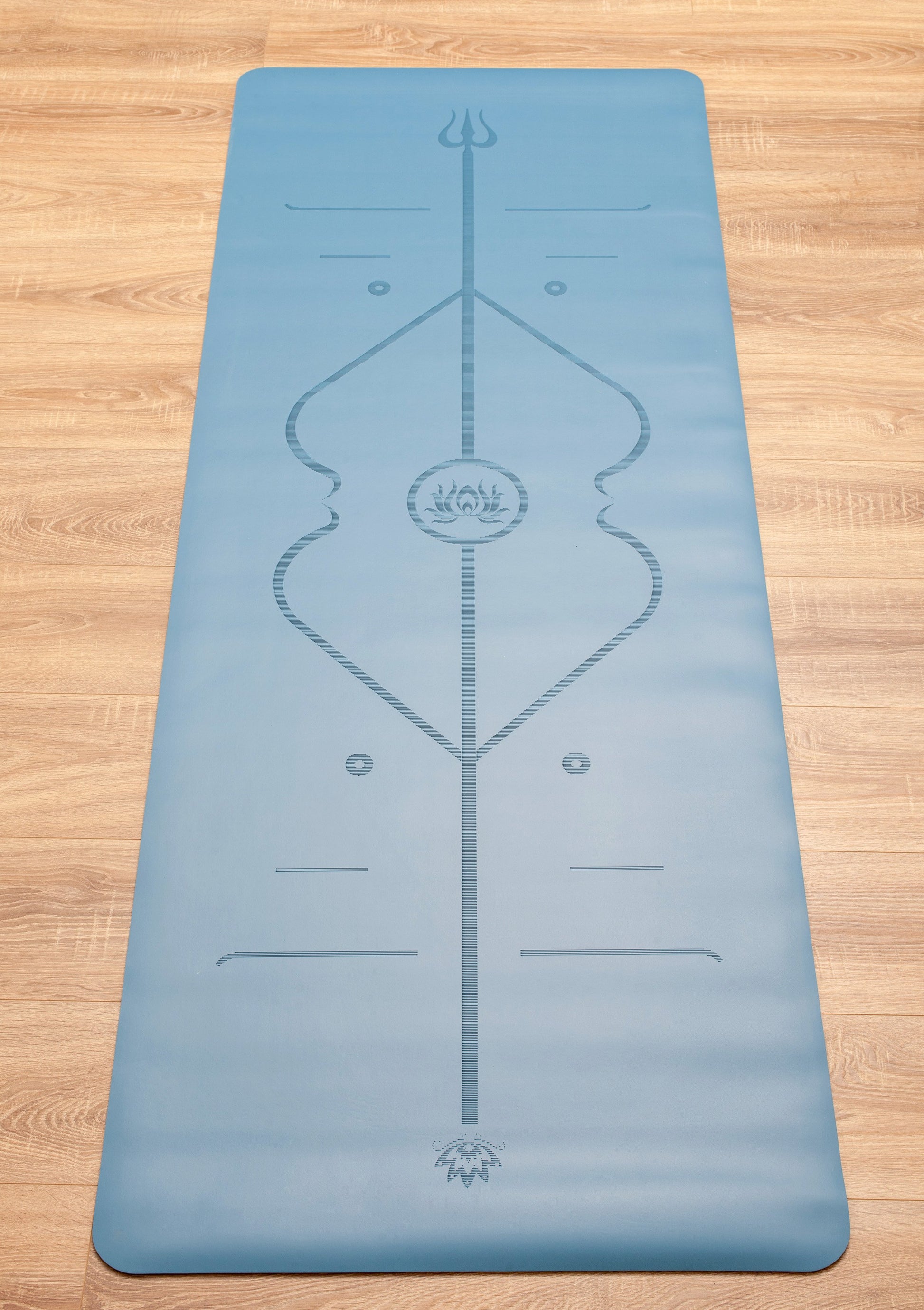 Support your yoga practice with our natural rubber yoga mat. A high grip PU surface on this yoga mat allows for superb grip with your hands and feet. No more slipping on your yoga mat which helps in preventing injuries. The printed design on your mat encourages the correct placement of your hands and feet allowing for correct body alignment. This yoga mat is slightly wider than the average yoga mat and has great cushioning for supporting your joints. The high grip PU surfaces wicks away moisture allowing you to practice with ease and confidence . Natural rubber is both anti bacterial and eco friendly .
