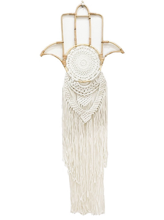 Hamsa bamboo, crochet and macrame wall hanging.