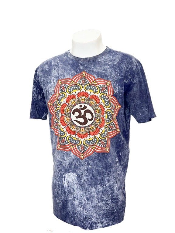 "Om Mandala" navy cotton tee shirt - X-large 58cm 1/2 chest