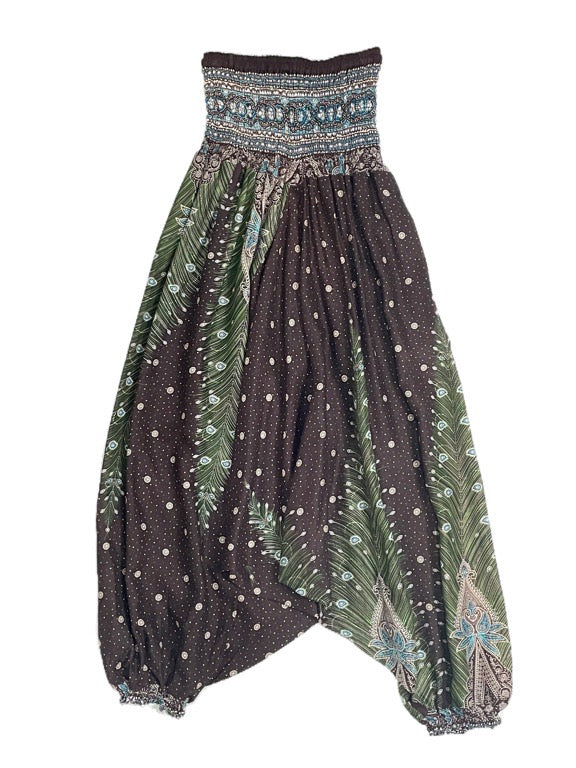 Light, soft rayon harem pant, that can also be worn as a halter neck jumpsuit.