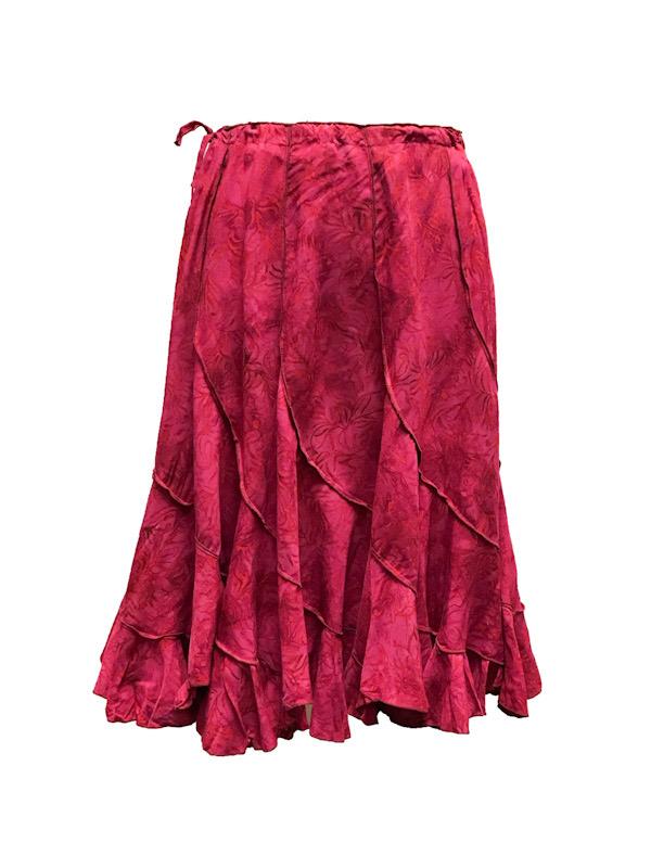Versatile soft rayon skirt with round, diagonal panels. 63cm length.