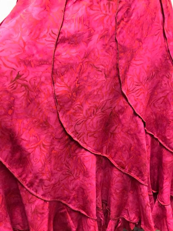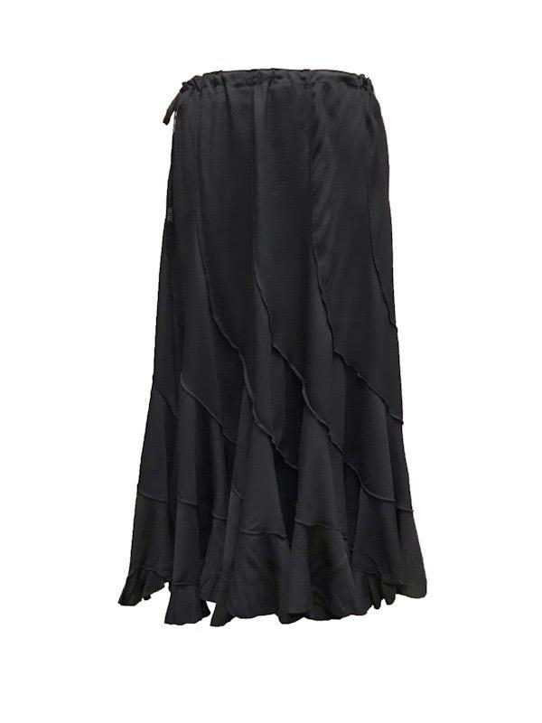 Versatile soft rayon skirt with round, diagonal panels. 80cm length.