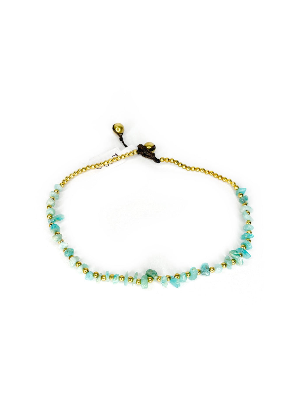A brass and stone anklet with beautiful, naturally shaped stones.