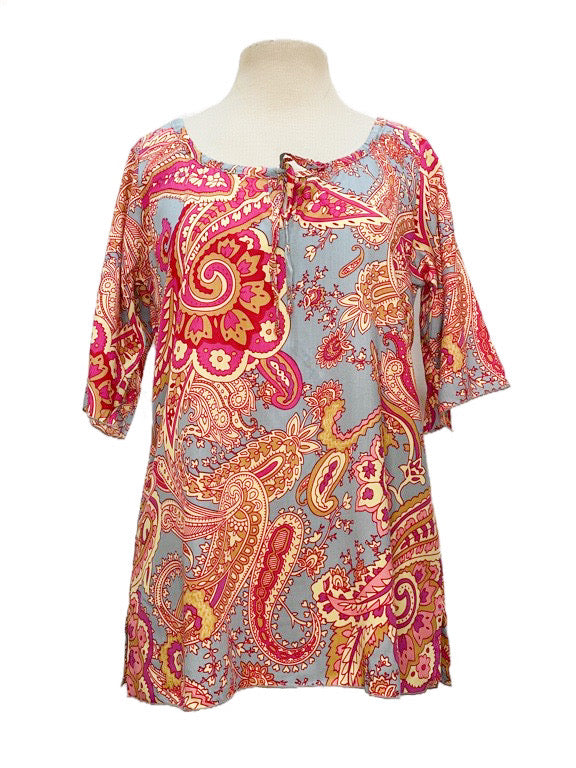 Round neck top with elbow length sleeve - various paisley - 859 B