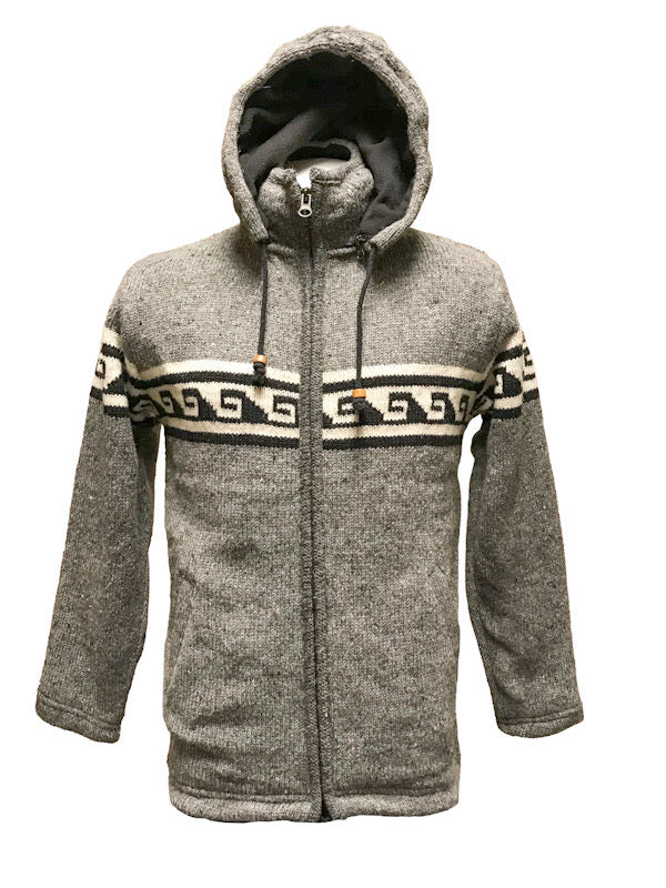 Wool Zip Through Fleece Lined Hoodie - Grey Wave - End of range